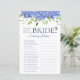 Esta linda folha de jogo de chuveiro de noiva de hortênsias azuis How Well Do You Know The Bride? é elegante e encantadora - perfeita para qualquer casamento de jardim, botânico, rústico, romântico, floral, formal ou vintage. Sua combinação requintada de hortênsias azuis multicores graciosas e folhagens tênues é fluida, delicada e bonita. Este jogo divertido e fácil certamente trará muitos risos para qualquer chá de noiva! Basta dar uma folha para cada convidado (não esqueça as canetas) e deixar o divertimento começar! Você ficará surpreso com quantas pessoas sabem as respostas. Para tornar este jogo seu, basta selecionar Personalizar este modelo e digitar o nome da noiva.