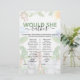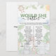 Torne o chá da 'mãe de honra' inesquecível com este elegante e engraçado jogo de chá de bebê 'would she rather'! O design apresenta ilustrações em aquarela de um macaco, papagaio, rinoceronte e girafa sentados em um fundo verde de selva.