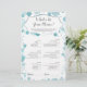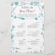 Jogo de chá de fraldas de lado duplo. Um lado é "O que há no seu telefone?" e o outro é "O que há na sua bolsa?" Este cartão de jogo de chá de fraldas apresenta uma fonte moderna num fundo de pontos de folha azul pastel, perfeito para um bebê!