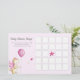 Bingo de chá de fraldas bonito para a sua celebração com um pequeno dragão bonito segurando um balão rosa. Excelente para chás de fraldas de meninas de gênero. Ilustrada e projetada por Patricia Alvarez.