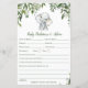 Cartão de Chá de fraldas de Elefante Selvagem Safari Predições e Cartão de Aviso para Bebês IMPRESSOS