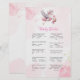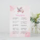 Desafie seus convidados com fatos divertidos e surpreendentes sobre bebês neste cartão de jogo "Baby Trivia", rodeado por nuvens brancas e cor-de-rosa e um design suave de cegos. As cores pastéis e as estrelas brilhantes adicionam um encanto doce e feminino enquanto mantêm o jogo visualmente sobre o tema. É uma maneira interessante de educar e entreter ao mesmo tempo.