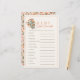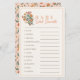 Este cartão de chá de fraldas "baby word scramble" do boho & retro apresenta um fundo creme com um buquê de flor silvestre retrorreflector em rosa e laranja. O verso apresenta um fundo creme com padrões de flor silvestre. Personalize para suas necessidades. Você pode encontrar mais produtos correspondentes na minha loja. Respostas : 1. FRALDA 2. EMBALAGEM 3. ROLADOR 4. ANIMAL ALIMENTADO 5. ROUPA 6. TEDDY BEAR 7. RÁCIO 8. ENFERMEIRO 9. FRASCO 10. FÓRMULA 11 LEITE 12. CRADLE