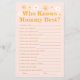 Torne o seu chá de fraldas extra especial com o nosso Jogo de Chá de fraldas Rosa Personalizado 'Quem Conhece Melhor Mamãe'. Perfeito para jogos de chá de fraldas, este charmoso jogo ajustado uma variedade de temas de chá de fraldas. Quer você esteja explorando ideias de chá de fraldas primavera, hospedando um chá de fraldas de abril, ou procurando por ideias de chá de fraldas de março, seu design floral complementa temas de chá de fraldas de jardim e temas de chá de fraldas de flor silvestre. Ideal para um chá de fraldas de "bebê em flor", ele adiciona um toque de elegância a qualquer bebê em tema de chá de fraldas florescente ou bebê em ideias de chá florescente.
