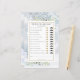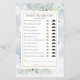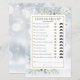 Com delicadas folhas de greenery em aquarela em um fundo de flocos de neve de inverno, este divertido jogo de chá de noiva pode ser personalizado com suas próprias perguntas de adivinhação. Criado por Thisisnotme©