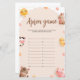 Este adorável cartão de chá de fraldas apresenta um tema fazenda charmoso com ilustrações bonitinhas de uma vaca, coelho, pintinho, cavalo e porco, cercado por flores alegres e um sol sorridente. As cores pastel suaves e a design branca criam uma atmosfera quente e convidativa. Visite o nosso compro para ver toda a nossa coleção de animais de Fazenda castanha-branca.