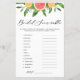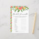 Adicione este divertido e festivo jogo de chá de panela personalizável ao seu evento. Apresenta verde-aquarela, toranja, laranja e hálito de bebê. Personalize esta trivia do chá de panela cítrico adicionando seus próprios textos. Este jogo de chá de panela de toranja é perfeito para chás de panela de verão.