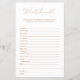 Com seu elegante design branco, esse jogo exude sofisticação e estilo. Reúna seus entes queridos, divida em equipes, e deixe que a competição amigável comece. Projetado para coordenar com a Coleção de Convite para Casamento "Chloe". Para alterar os detalhes, clique em "Detalhes". Para mover o texto ou alterar o tamanho, a fonte ou a cor, clique em "Editar usando a Ferramenta de Design". Exibir o link de coleção nesta página para ver todos os itens correspondentes nesta bela design
