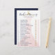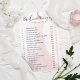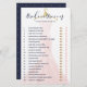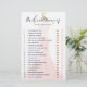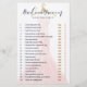 Placa de jogos de diversão e na moda ou de chá de panela de noivo. Jogo divertido para jogar na sua festa de chá de panela. Vestido cor-de-rosa pincelado elegante com cabide dourado exibido no fundo. O cartão de jogo pode ser personalizado com sua lista de perguntas. Arte original e design por Paparia de Moodthologia.
