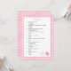 Esses Cartões Bebês personalizados e adoráveis são uma diversão para convidados chás de fraldas. Inclui 10 perguntas triviais interessantes, dê um prêmio à pessoa com as respostas mais corretas! Estas são placas verticais de 5" x 7". Recursos - Apresenta-se em impressão de gingham cor-de-rosa, azul, amarelo ou verde na frente e atrás (a parte traseira é gingham simples na mesma cor que a frente). -Codificação do gráfico pacificador na frente. -Inferior direito inclui nome próprio personalizável da futura mãe e data do chá. Respostas - 1b, 2c, 3c, 4a, 5b, 6c, 7b, 8a, 9a, 10b