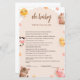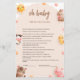 Este cartão de jogo de chuveiro de bebê adorável apresenta um tema charmoso de animais da fazenda com ilustrações fofas de uma vaca, coelho, pintinho, cavalo e porco, cercados por flores alegres e um sol sorridente. As cores pastéis suaves e o design caprichoso criam uma atmosfera quente e convidativa. Visite nossa loja para ver toda a nossa coleção Brown Cute Farm Animal.