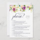 Cartão de jogo de chá de panela de noiva Chic combina com nossa coleção de chá de panela de noiva Vibrant Bloom e apresenta bordas florais em aquarela em violeta e verde. Cartão frente e verso permite que você obtenha dois jogos em um! A frente apresenta "Quão bem você conhece a noiva" e o verso apresenta "O que está no seu telefone". Personalize com o nome da noiva e a data do chá. As perguntas "O que está no seu telefone" são completamente personalizáveis usando os campos de modelo na página. Para personalização adicional, sinta-se à vontade para entrar em contato!