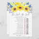 Cartão de jogo de chá de noiva country chic combina com nossa coleção de chá de noiva Flowerfields e apresenta uma borda superior de girassóis amarelos em aquarela e botões minúsculos em azul marinho. Cartão duplo face permite que você obtenha dois jogos em um! A frente apresenta Ele Disse, Ela Disse e o verso apresenta uma palavra embaralhada com tema de casamento. Personalize com o nome da noiva e a data do chá. Para personalização adicional, sinta-se à vontade para entrar em contato!