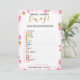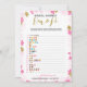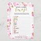 Um delicado jogo moderno de "Emoji Pictionary" para chá de noiva floral, o design apresenta um padrão floral rosa e dourado. Este cartão é personalizado com o nome da noiva e a data do chá.