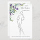 Jogo de Chuva de Presentes Noivado Adivinhe o Vestido. Este design apresenta uma ilustração em aquarela de flores de lavanda roxa e folhagem de eucalipto. Você desenha o estilo de vestido de noiva, a versão mais próxima do vestido real da noiva vence!