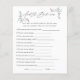 Cartões de jogo do que a noiva estava vestindo para chuveiro de noiva de inverno com folhas de aquarela, projetados para serem personalizados rápida e facilmente.