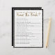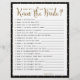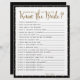 Layout simples em preto e branco com bolinhas douradas, Jogo de Questionário "Quão bem você conhece a noiva", jogo de lista de verificação. A cor do fundo é personalizável.