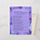Procurando um jogo de noivado ou chá de casamento? Este jogo de chá de panela é divertido de ver quem mais sabe sobre a noiva. Há 20 perguntas a serem respondidas por cada um dos convidados do seu chá de panela e aquele que receber o máximo de respostas acertadas ganha o jogo. Este design é apresentado em lindas flores de hydrangea roxa. Além disso, você pode personalizar o jogo de noiva ou de chá de casamento com o nome da noiva para estar no topo para fazer um jogo de chá de panela muito personalizado. Direitos autorais