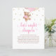Chá de fraldas De Fraldas Noturnas Tardias E Poster De Jogo De Urso De Carro De Água, Rosa E Balões Dourados. Design apresenta um esquema de texto elegante e moderno. Para fazer alterações avançadas, selecione a opção "Clique para personalizar mais".
