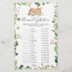 O cartão de jogo de gestação de animais de chá de fraldas de veados apresenta uma ilustração de veados de aquarela e verde-aquarela eucalipto garland e uma elegante fonte de estilo manuscrito.