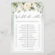 Jogo de Chá de Noiva Boho com Flores e Rosas Brancas e eucalipto fresco combinados com letras modernas e rústicas - este jogo boho 'Would she Rather' é perfeito para a sua festa