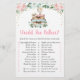 Esses cartões de jogo 'Would She Rather' são uma atividade divertida para Chá de Noiva. Basta passá-los durante o chá, onde os convidados se divertirão tentando descobrir qual atividade a noiva prefere fazer. O design apresenta malas e um globo com florais em aquarela rosa e confetes de folha de ouro falso.