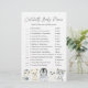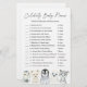 Os animais árcticos do inverno têm o tema celebridade do chá de fraldas e o cartão de jogos com nomes para bebês apresenta uma ilustração de animais árticos a aquarela e verde-aquarela eucalipto garland e uma elegante letra de estilo manuscrito.