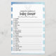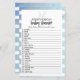 Fundo branco, branco azul, listrado de cor d'água para um chá de fraldas temático de um bebê. Um coelhinho branco aparece logo acima do nome da honra.