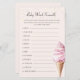 Folha de jogos do Chá de fraldas Baby Word Scramble, com instruções de jogo editáveis - atividade de quebra-cabeça de palavra divertida para jogar no seu chá de fraldas bonito. Cartão de palavras de bebê de chá de fraldas da menina com tema de sorvete bonito com ilustração aquosa de sorvete rosa em um cone waffle. A lista de palavras neste cartão está relacionada com bebês e eles estão embaralhados. Os hóspedes vão competir quem pode desembaraçar todos eles primeiro! CHAVE DE RESPOSTA: 1. Leite 2. banco do carro 3.Trabalho 4. Colic 5. livro 6. limpa 7. berço 8. berçário 9. Criança 10. Berço 11. Loção 12. ursinho de pelúcia.