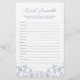 Atira seus convidados de chá de panela com este lindo Jogo de Palavras Azuis Chinoiserie Bridal Francesa! Com um design floral barroco em tons de azul e branco, esse jogo combina sofisticação e diversão. Os convidados no seu chá serão motivados pelo desafio de decifrar palavras como 'dona de honra', 'lua de mel' e 'casamento' enquanto admiram os gráficos florais refinados. O design de colheita de chic desmonta esse jogo de palavras, garantindo que seu chá de panela se sinta especial. Dê aos seus hóspedes uma atividade na moda que encoraje o riso e a competição amigável. O Jogo de Palavras Bridas da Chinoiserie Azul Francês é a escolha perfeita e elegante no tema para um chá se lembrar!