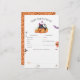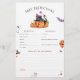 Um jogo de predições de bebês para um chá de fraldas temático de halloween! Um excelente preto e laranja, neutro em relação ao gênero, para rapazes ou raparigas, esperado por volta de outubro. Esta design apresenta uma ilustração aquosa de um gato preto giro vestindo um chapéu roxo e segurando uma varinha mágica, duas abóboras laranja sorridentes, dois fantasmas assustadores, um chapéu de bruxo, um morcego roxo e um balão laranja engraçado. Um cartão de jogo de predições e conselhos para bebês que combina com o nosso design "A Little Boo Is Quase due Halloween". Veja a coleção vinculada nesta página para itens correspondentes ou visite nossa loja para mais designs de chá de fraldas halloween.