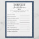 Divirta-se a jogar este jogo de perguntas triviais na sua próxima reunião de família. Atender ou adivinhar o nome do(s) membro(s) da família para as perguntas que podem ser personalizadas. Fundo de damasco azul.