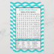 Procurando um jogo de chá de panela em turquesa? O olhar acabou. Esta festa divertida do chá de panela apresenta as listras de gíria azul-turquesa e branco zigzag em segundo plano para o jogo. O jogo é procurar palavras de casamento. Você pode colocar o nome da noiva em cima para criar um jogo de festa personalizado em turquesa. Direitos autorais