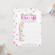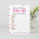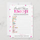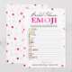 Este jogo moderno de Emoji Pictionary apresenta um fundo magenta rosa com confetes metálicos. O texto é escrito em uma mistura de uma fonte de caligrafia divertida e uma fonte serifada moderna. Este cartão é personalizado com o nome da noiva e a data do Chá de Panela.