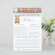 Adicione uma atividade doce e memorável à sua celebração com o Jogo de Chá de Bebê de Previsões e Conselhos para Bebê da We Can Bearly Wait da Porch and Gable Design. Com um charmoso ursinho de água-forte segurando um balão azul, suaves acentos em azul claro e um fundo xadrez gingham marrom, este cartão de jogo é tão elegante quanto significativo. Os convidados podem preencher suas previsões para a data de nascimento do bebê, horário, sexo, peso e muito mais, ao mesmo tempo em que deixam conselhos e palavras de encorajamento para os futuros pais.