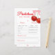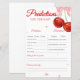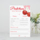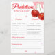 O "Cartão de Jogo de Predicções de Chá de fraldas de Cereja Única" é um cartão pequeno e charmoso, adornado com um arco cor-de-rosa macio e estrelas pequenas dispersas. Ele apresenta um design de cereja giro e permite que os hóspedes façam previsões divertidas sobre os detalhes de nascimento do bebê, como data, peso e marcos futuros. O design doce e compacto faz dele uma adição deliciosa a qualquer chá de fraldas, fornecendo uma atividade divertida e uma manutenção para os futuros pais.