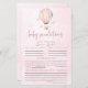 Esta é uma atividade de previsão de chás de fraldas de Ar Quente Rosa. Permite aos hóspedes adivinhar o sexo, a data de nascimento, o tempo, o peso, a cor do cabelo, a cor do olho, o comprimento, etc. Há também uma linha para dar conselhos.