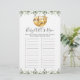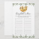 O cartão de jogo de corrida do chá de fraldas ABC com tema "Largura" apresenta uma ilustração de preguiça-d-água e verde-aquarela eucalipto garland e uma elegante fonte de estilo manuscrito.