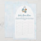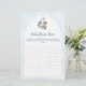Aumente a energia em seu chá de fraldas com este divertido e veloz Jogo Race de Nome do Bebê, apresentando um adorável celular azul-berço, nuvens e estrelas em um tema de berçário suave. Os convidados irão concorrer para escrever nomes de bebês para cada letra do alfabeto — e o primeiro a terminar ganhará! É uma atividade doce e envolvente que traz risos e competição amigável para a celebração do seu bebê. Perfeitamente coordenado com a Coleção de Chás de fraldas Blue Nursery Cute Boy, este cartão de jogo adiciona charme e entretenimento ao seu evento.