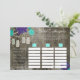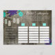 Este ótimo jogo de scattergories para chá de noiva rústico fará seus convidados sorrir em pouco tempo! Este jogo de festa apresenta um fundo de madeira de celeiro rústico com flores turquesa e roxas no topo com jarros de mason pendurados nelas. Dentro dos jarros de mason estão as palavras "amor" em várias cores. Um ótimo jogo de festa de casamento que os convidados vão falar por anos!