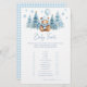 Adicione um toque de elegância ao seu chá festivo de bebê do inverno com o nosso sofisticado jogo "Traços de Bebê". Apresentando um encantador ursinho vestindo chapéu azul giro e um cachecol, segurando um balão azul, cercado por pinheiros de inverno e flocos de neve e padrão de gingham azul bebê atrás, esta atividade deliciosa é perfeita para entreter seus convidados e criar memórias duradouras. Ideal para adicionar diversão e entusiasmo à sua celebração especial!