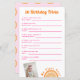 Estas folhas de jogo de trivia do primeiro aniversário apresentam um design de frutas divertido perfeito para festas com tema de doce ou frutas. Personalize usando a ferramenta de edição para adicionar suas próprias perguntas e encurtar ou alongar as linhas de resposta. Encontre itens de festa correspondentes na minha loja!