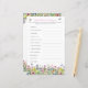 Bonito, verão e cheio de diversão espiritual, este cartão de jogo de palavras de chá de fraldas apresenta um campo brilhante de flores silvestres delicadas com borboletas, espécimes do gênero Bombus spp. e preguiçosos. Você pode personalizar todo o texto para suas necessidades específicas. Entre em contato com o designer para obter produtos correspondentes que não estejam disponíveis. As respostas às palavras embaraçadas são as seguintes: 1. Enfermeiro 2. Frasco de alimentação 3. Rolador 4. Fralda 5. Enfermagem do travesseiro 6. Roupas de bebê 7. Monitor de bebê 8. Fralda 9. Chá de fraldas 10. Troque 11. Pacificador 12. Cobertura