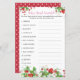 Um bebê doce de fruta está a caminho! Este cartão de jogo de palavras-chá de fraldas apresenta morangos, flores brancas e verde. É complementada com uma tipografia divertida no estilo da caligrafia e um reverso das sementes de morango doce. Você pode personalizar todos os detalhes de texto e posicionamento gráfico de acordo com suas necessidades específicas. As respostas às palavras embaraçadas são as seguintes: 1. Enfermeiro 2. Frasco de alimentação 3. Rolador 4. Fralda 5. Enfermagem do travesseiro 6. Roupas de bebê 7. Monitor de bebê 8. Fralda 9. Chá de fraldas 10. Troque 11. Pacificador 12. Cobertura