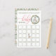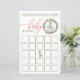 Divirta-se com este cartão festivo de jogo do Baby Bingo! Apresentando uma camada verde de aquarela, bagas de férias e sotaque de ornamento carrossel, este jogo é perfeito para manter os convidados envolvidos durante o chá. Os convidados enchem cada praça com seus palpites de presentes, e depois os marcam quando os presentes são abertos — primeiro para ganhar cinco em fileira!