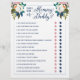 Agora com perguntas editáveis (mantenha-as em 15 para alinhar com os círculos). Pais para serem Casais, no papel do folheto. (como o jogo "adivinhar quem é noiva ou noiva") Jogo de chá de fraldas floral pintado. A cor do backer é personalizável. Os lindos florais pintados são Criados pelo Corte. Encontre-os no Creative Market https://crmrkt.com/7WdAX, Etsy https://www.etsy.com/shop/CreateTheCut e www.createthecut.com