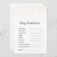 Este jogo Dourado de predições para bebês do Confetti é perfeito para um chá de fraldas ou borrão clássico, neutro em relação ao gênero. O design apresenta um confete de ouro falso sobre um fundo branco com elegante caligrafia escura.