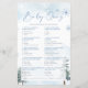 Chá de fraldas de jogos do Quiz chá de fraldas no tema do inverno com pinheiros e flocos de neve. Seguem-se as respostas: 1. C 2. B 3. A 4. C 5. A 6. A 7. B 8. B 9. 10. C