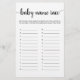 Adquira este jogo e desfrute de um cartão Race de nome de bebê de alta qualidade para o seu evento! Design de preto e branco neutro em gêneros.
