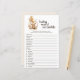 Torne o seu chá de fraldas mais divertido com este adorável jogo do "Baby Word Scramble", com uma ilustração de aquarela doce de um ursinho de pelúcia fofo com balões. Os convidados adorarão palavras relacionadas a bebês incansáveis nesta atividade engajada, perfeita para manter todos entretidos. Peça o seu hoje e crie uma experiência divertida e memorável para seus convidados!
